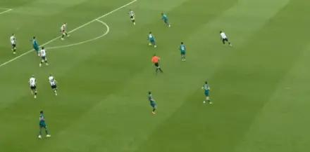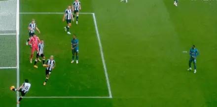 第24分钟,霍尔主罚右侧角球,禁区中路无人盯防的吉马良斯头球冲顶破门,凯帕单手扑救不及,纽卡斯尔扳平比分。