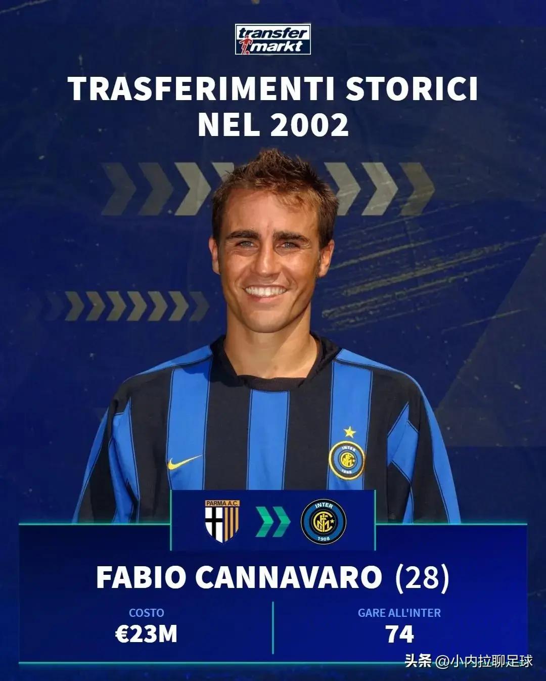 蓝黑军团花费2300万欧,将时年28岁的帕尔马中坚力量卡纳瓦罗招致麾下;此后的两个赛季,他共身披蓝黑战袍出战74场比赛,制造5球;也是被伤病影响了……