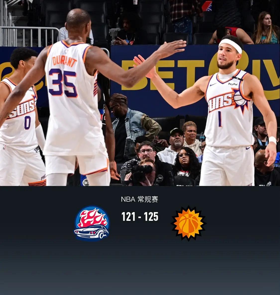 活塞方面,哈里斯交出了21分、5个篮板、2次助攻和1次盖帽的表现,坎宁安则拿到了20分、6个篮板、11次助攻、1次抢断和1次盖帽,杰伦·杜伦贡献了15分、10个篮板和2次助攻。太阳方面,杜兰特的36分、7个篮板、5次助攻、2次抢断和3次盖帽带领球队,布克也有35分、5个篮板、3次助攻和1次抢断的亮眼表现,新援理查兹在首场比赛中则交出了21分、11个篮板、1次助攻和1次抢断的成绩。