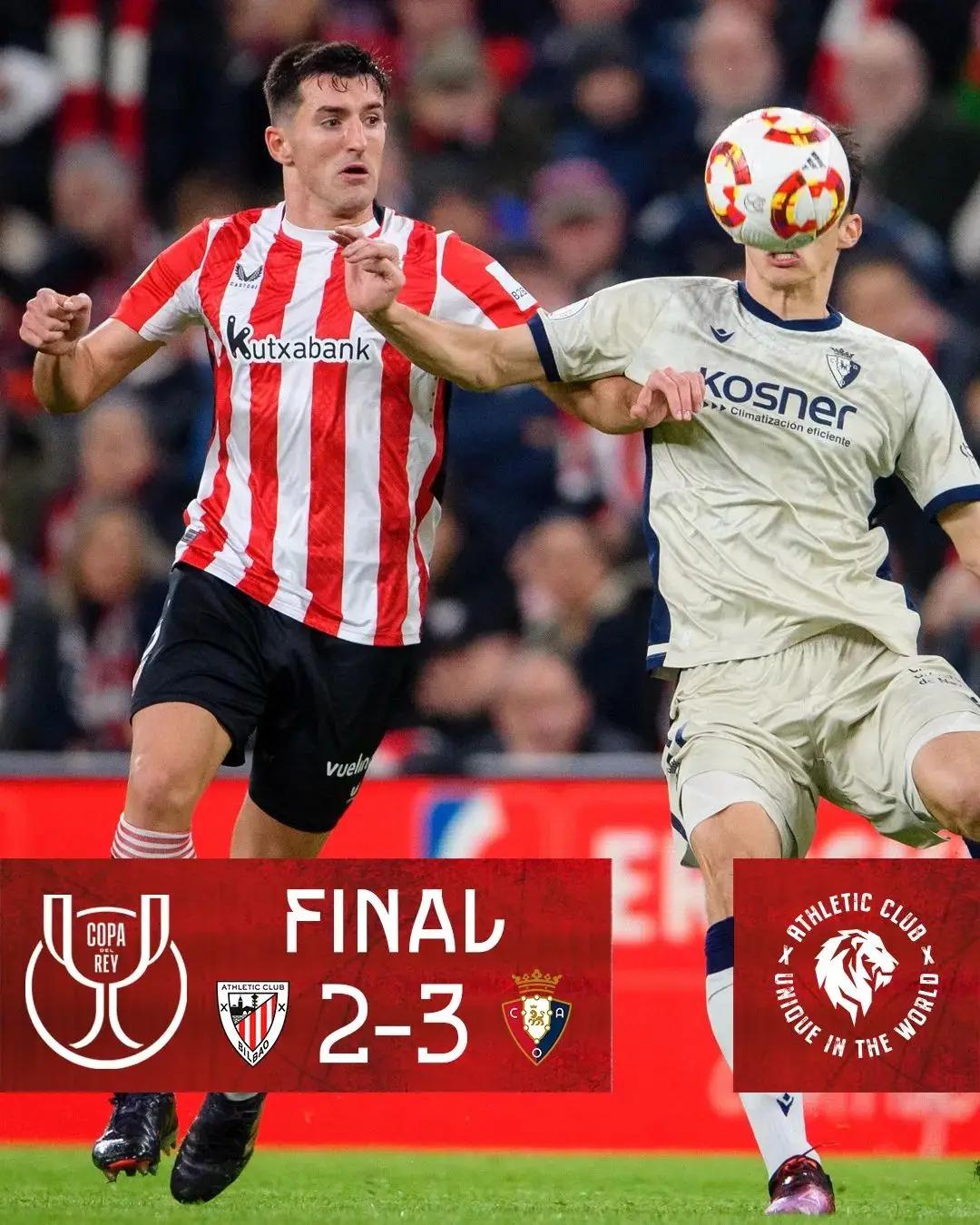 毕尔巴鄂竞技上轮西甲已经提前进行,上个月他们主场击败了皇家马德里。在出发前往沙特参加西班牙超级杯之前,毕尔巴鄂竞技在西甲联赛中客场击败了奥萨苏纳,凭借这场胜利他们暂时稳居积分榜第四。不过超级杯的失利带给了他们霉运,在本周的国王杯中,毕尔巴鄂竞技再次遭遇手下败将奥萨苏纳,但这次笑到最后的是维森特莫雷诺的球队。主教练巴尔韦德在比赛中基本排出了最强阵容,但奥萨苏纳显然有备而来。奥罗斯和头号射手布迪米尔连入两球取得领先,重返首发阵容的尼科威廉姆斯缩小分差,贝尔萨时代最后的硕果德马科斯下半场扳平比分。不过布迪米尔很快打入第三球,葬送了毕尔巴鄂竞技反扑的梦想。