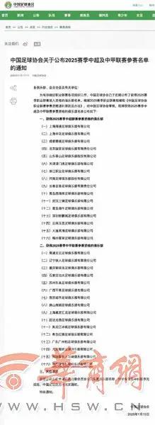 公告提及,根据2025赛季职业联赛规模和《中国足球协会职业联赛参赛资格递补原则及办法》,经中国足球协会审核后,获得2025赛季中超及中甲联赛参赛资格的俱乐部名单得以公布。陕西球迷最关注的无疑是陕西联合能否递补中甲,从名单来看,陕西联合位居中甲第十六位,幸运搭上了进军2025赛季中甲联赛的末班车。