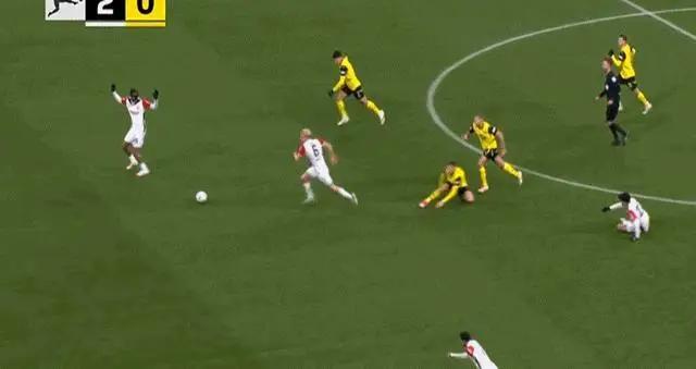 补时阶段,多特蒙德全线压上,结果后防空虚,被法兰克福抓住机会反击,霍伊伦单刀破门,2:0!