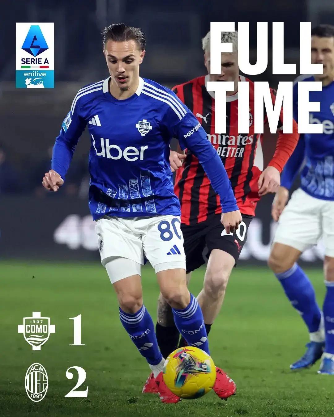 科莫在上周的意甲联赛中主场1-2输给AC米兰结束两轮不败,科莫在下半场首开纪录,从皇家贝蒂斯加盟的边锋Assane Diao突入禁区射门得手,他在自己的意甲首秀中就打入处子球。不过AC米兰并没有放弃,主教练孔塞桑在上任后第一场意甲联赛被卡利亚里逼平,这场比赛他们的争胜欲望非常强烈。第七十分钟从安特卫普加盟的法国门将布特兹出现低级失误,特奥埃尔南德斯扳平比分。五分钟后莱奥展现个人能力逆转比分。科莫的阿根廷前锋尼科帕斯在击败罗马的比赛中脚踝受伤一直没有痊愈,他最终在替补席上看完了整场比赛,从里昂加盟的边锋Maxence Caqueret替补登场完成首秀。科莫输球后排名下降至倒数第四,和倒数第三的维罗纳同分。