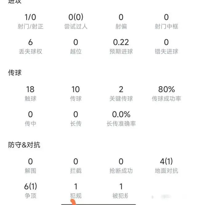 队友数次试图传球,寻求他来接应,可他不是跑的位置不合适,就是难以与对方后卫展开有效的身体对抗。最终结果是,四次地面对抗仅有一次成功,六次争顶也仅仅赢下一回。这般数据,对于一名支点中锋来说,是达不到标准的 。