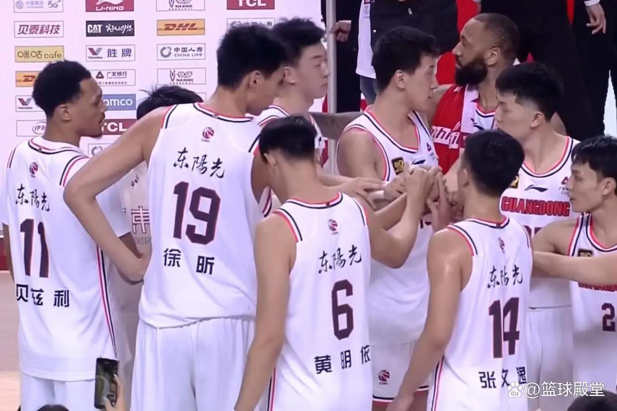 赛后广东加油鼓劲的时候,每个人都比较淡定。因为这场比赛没什么难度。而这场比赛结束之后,广东已经获得了九连胜,他们的状态在持续保持。