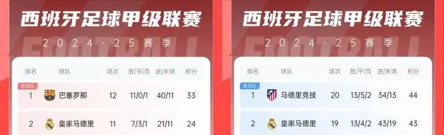 巴萨本赛季的起伏之大可见一斑。前12轮,巴萨11胜1负领先,以33分仅丢3分排名榜首,皇马因赛少9分,马竞同赛10分落后巴萨。