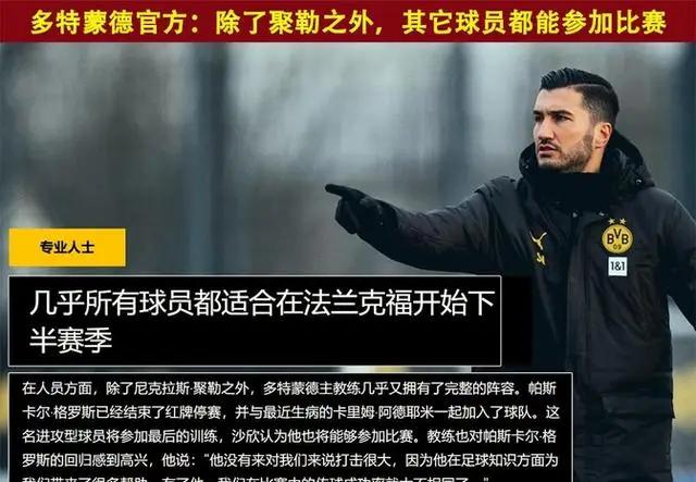 毕竟,眼下的多特蒙德,已经不是当初那个豪门球队,而是变成了球队内部焦点越来越多、球迷和媒体指责不断的失意巨人。