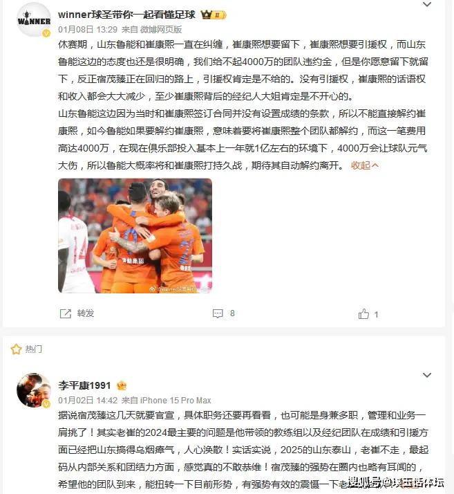 展望未来,若崔康熙教练在下赛季的执教成绩未能达到预期,宿茂臻凭借其深厚的执教功底与广泛的人脉资源,或将扮演更为积极的角色,不仅能在必要时接手帅印,更有可能成为教练组的领航者,引领泰山队向着更高的荣誉发起冲击。球迷们满怀期待,渴望宿茂臻的回归能为泰山队带来新的活力与希望,共同为2025赛季的冠军梦想奋力拼搏。