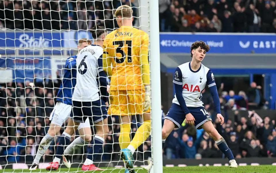 比赛开始仅12分钟,热刺后防线由于人员不足再次出现失误,多名球员被晃开,让埃弗顿的前锋勒温在禁区内转身推射破门,打破了僵局。