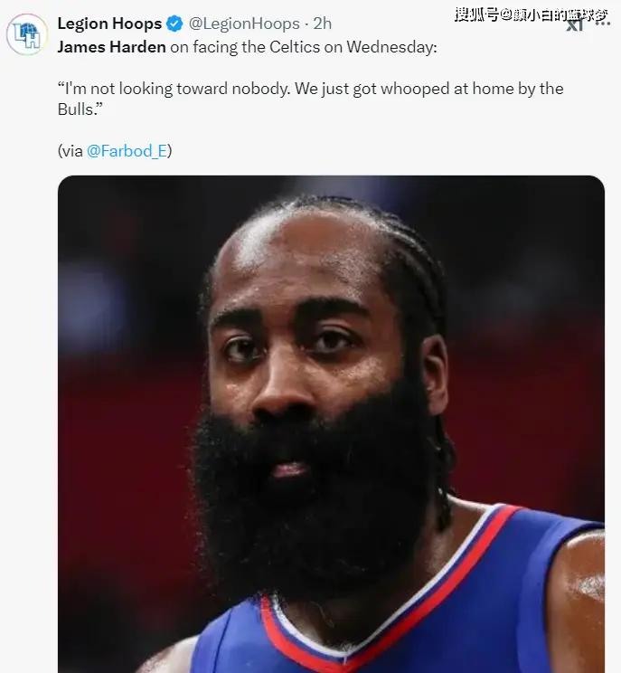 赛后哈登接受采访谈到下一场的对手凯尔特人:“我不指望任何人,我们刚刚在主场被芝加哥胖揍了。”