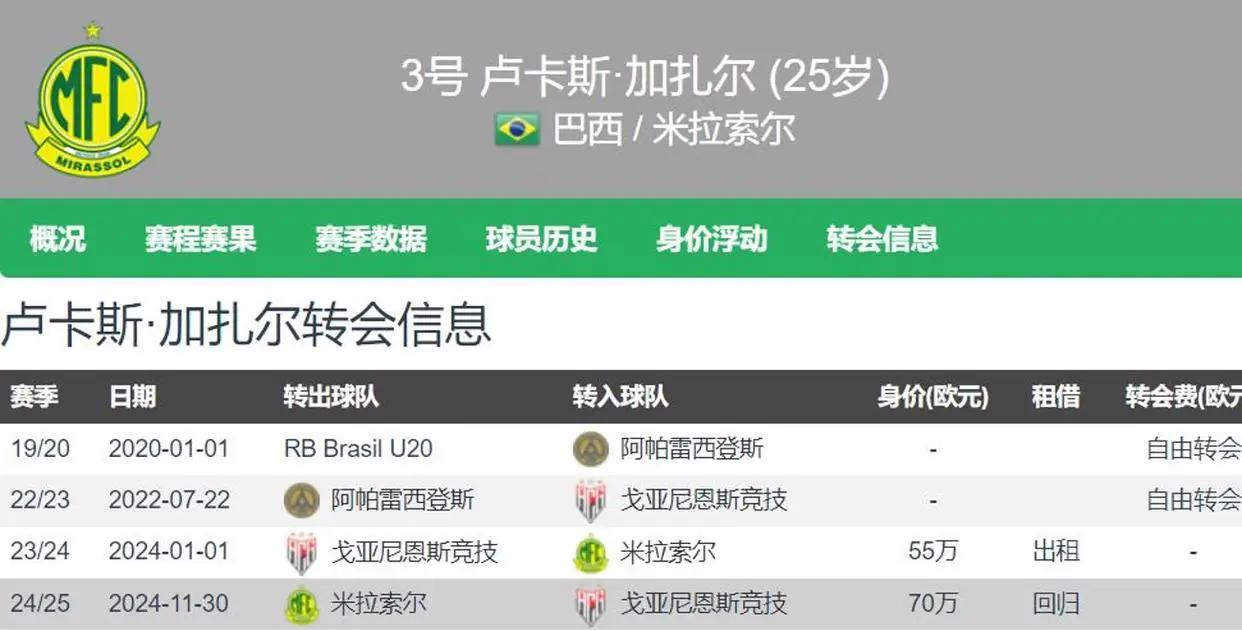 在2022年的夏季转会窗口,加扎尔以自由身的身份加盟了巴西的戈亚尼恩斯竞技俱乐部。这位球员在上个赛季曾被租借到米拉索尔效力,直到去年12月才重新回到戈亚尼恩斯竞技的怀抱。这就像是一只曾经离巢的鸟儿,最终还是飞回了自己最初的温暖家园。