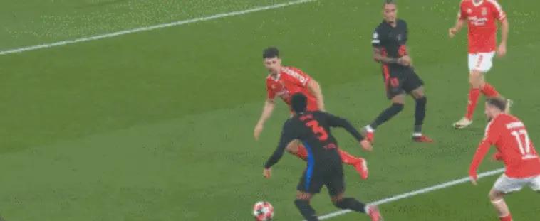 本菲卡快速反击,一脚传中到门前,帕夫利季斯包抄抽射破门,巴萨0-1落后。