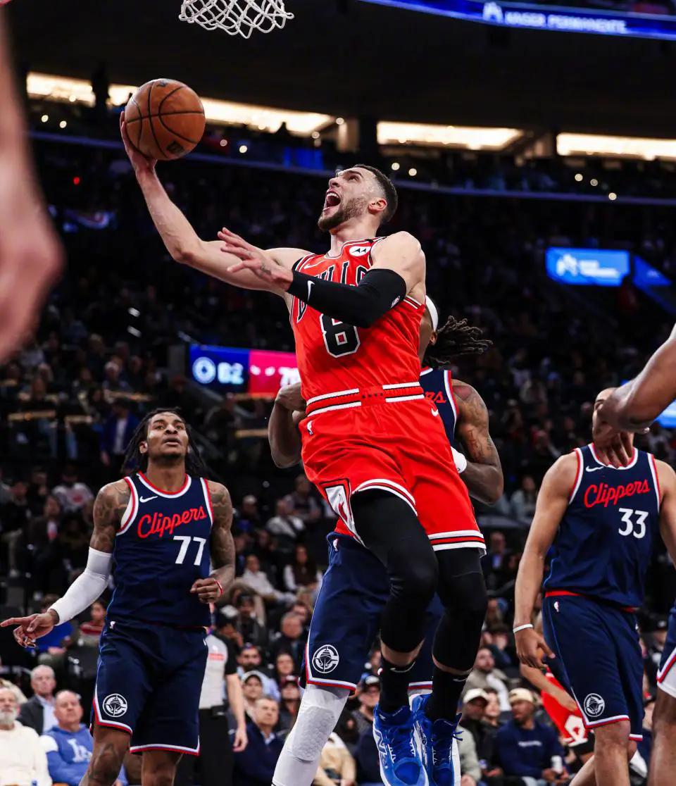 在北京时间1月21日进行的NBA常规赛中,洛杉矶快船队在主场迎战芝加哥公牛。由于莱昂纳德和祖巴茨缺阵,快船开局时表现十分低迷,被对手压制。然而,在第二节过程中,快船通过一波16-4的攻击波成功反超了比分。尽管下半场开始后快船又陷入得分荒,单节竟然狂输20分。虽然在末节快船发起反击,但最终未能扭转局势,以99-112不敌公牛,结束了自己的四连胜。