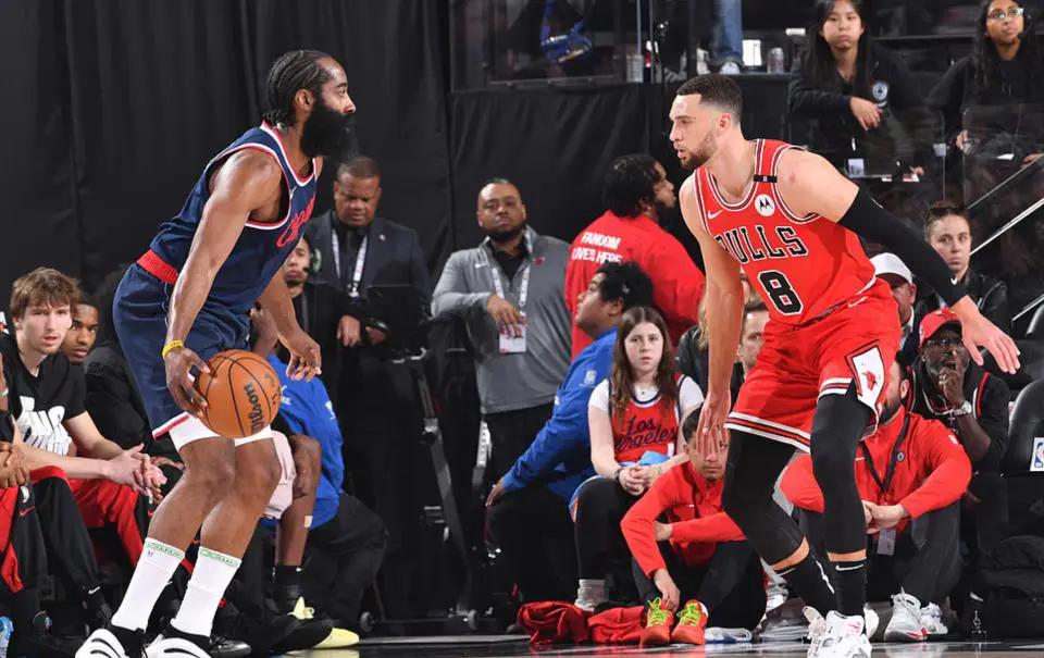 对于快船来说,詹纳德和祖巴茨的缺阵令人遗憾,虽然哈登和鲍威尔承担起了领军职责,却未能带来预期的效果。在上半场比赛中,快船在防守环节表现出色,让公牛的进攻显得十分艰难,前两节公牛仅得48分。然而快船的进攻同样乏力,由于背靠背作战,球员们体能有所下降,上半场他们也只得50分,并勉强保持2分领先。