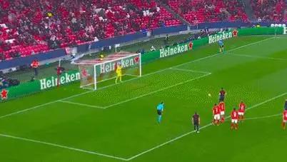 本菲卡门将特鲁宾开球,皮球砸在拉菲尼亚头上,直接飞入网窝,巴萨2-3!这个意外进球,让巴萨看到扳平希望。