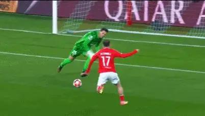 第22分钟,本菲卡后场长传,什琴斯尼出击冒失,将队友巴尔德撞倒!帕夫利季斯意外获得超级空门机会,希腊前锋笑纳大礼,巴萨1-2落后。