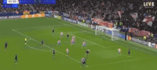 人数占优的勒沃库森发动了猛烈的攻势,马竞防线摇摇欲坠。上半场补时阶段,因卡皮耶后点头球破门。半场两队射门10-2,马竞相当被动。