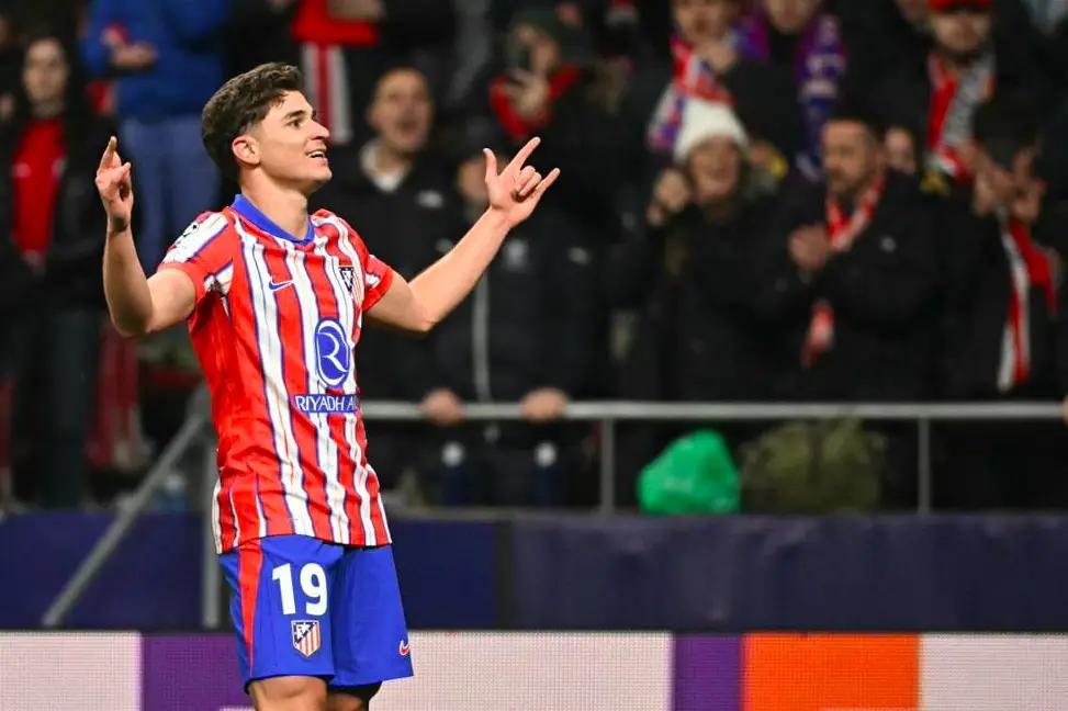 第51分钟,少打一人的马竞扳平比分,格列兹曼送出助攻,阿尔瓦雷斯甩开两人防守,冷静破门。