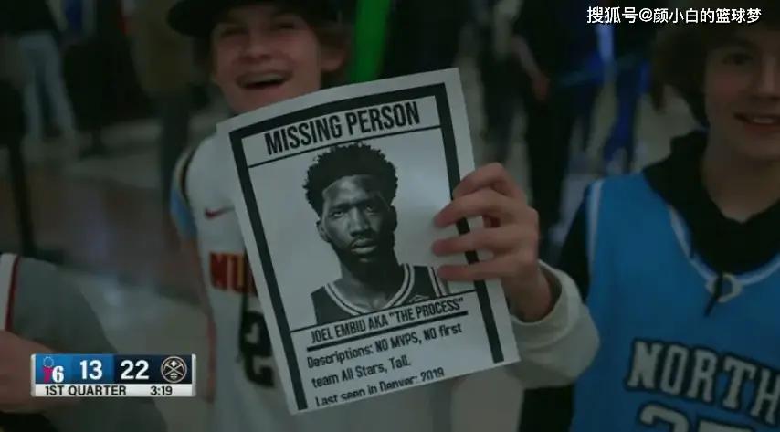 可掘金球迷还是打印了恩比德的寻人启事来嘲讽大帝。