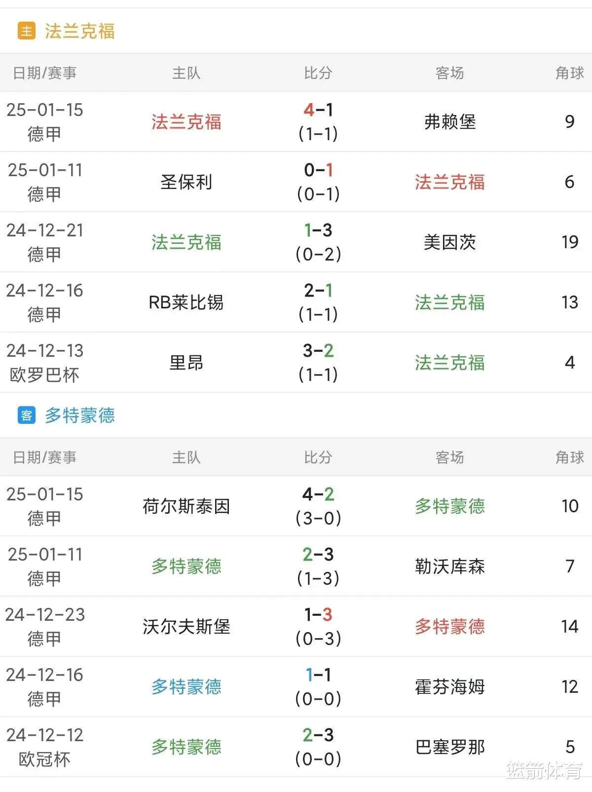 德甲第18轮的一场焦点对决即将打响,法兰克福将坐镇主场迎战来访的多特蒙德。大黄蜂多特蒙德近期状态不佳,这无疑为法兰克福提供了一个绝佳的抢分机会。