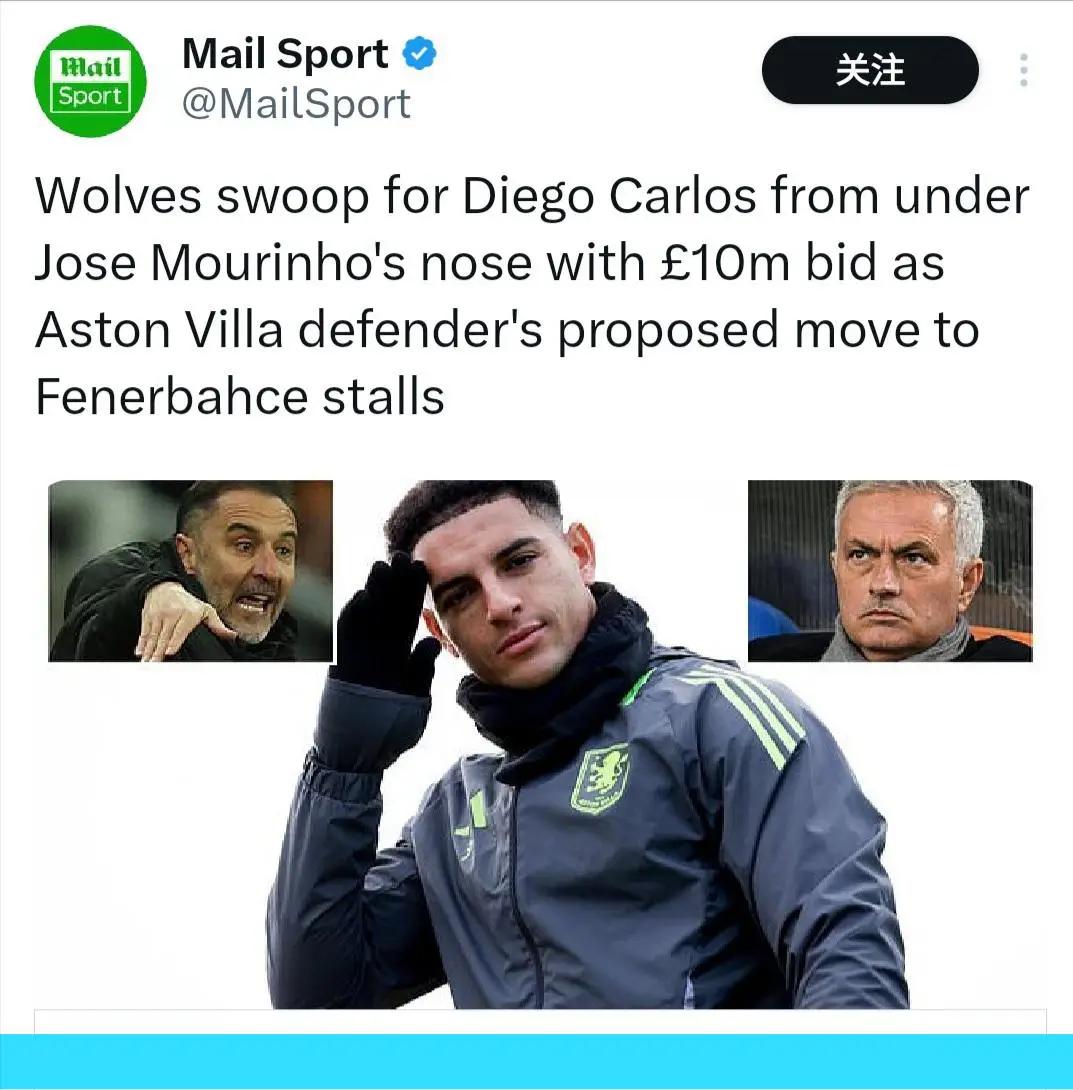 据悉,费内巴切原本已与迭戈·卡洛斯达成协议,并计划晚上18:30抵达伊斯坦布尔。然而,突如其来的狼队报价打乱了一切,让迭戈·卡洛斯的转会进程再度受阻,不得不重新安排航班行程。