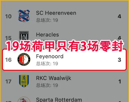更何况,费耶诺德本赛季的防守水平便不尽理想,缺乏稳定性也让他们频频陷入困局。据统计,他们在荷甲的零封次数仅为三次,是联赛中第三少的球队。若在国内赛事都如此难以保持级别,面对拜仁这样的平台,失分将变得不可避免。