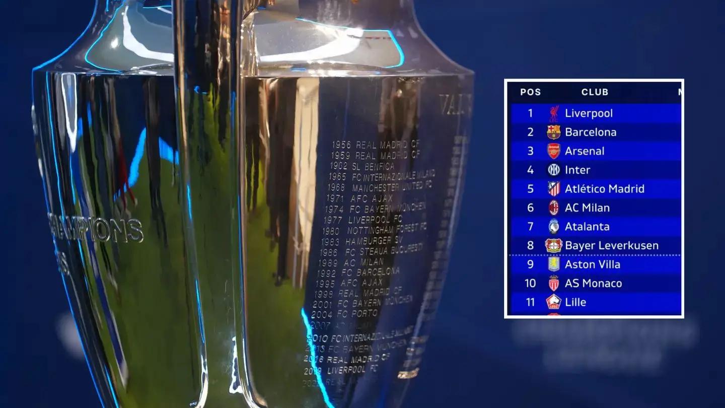 确定晋级16强或附加赛球队:阿森纳、维拉、亚特兰大、马竞、拜仁、布雷斯特、凯尔特人、多特、费耶诺德、国米、尤文、勒沃库森、里尔、米兰、摩纳哥、皇马