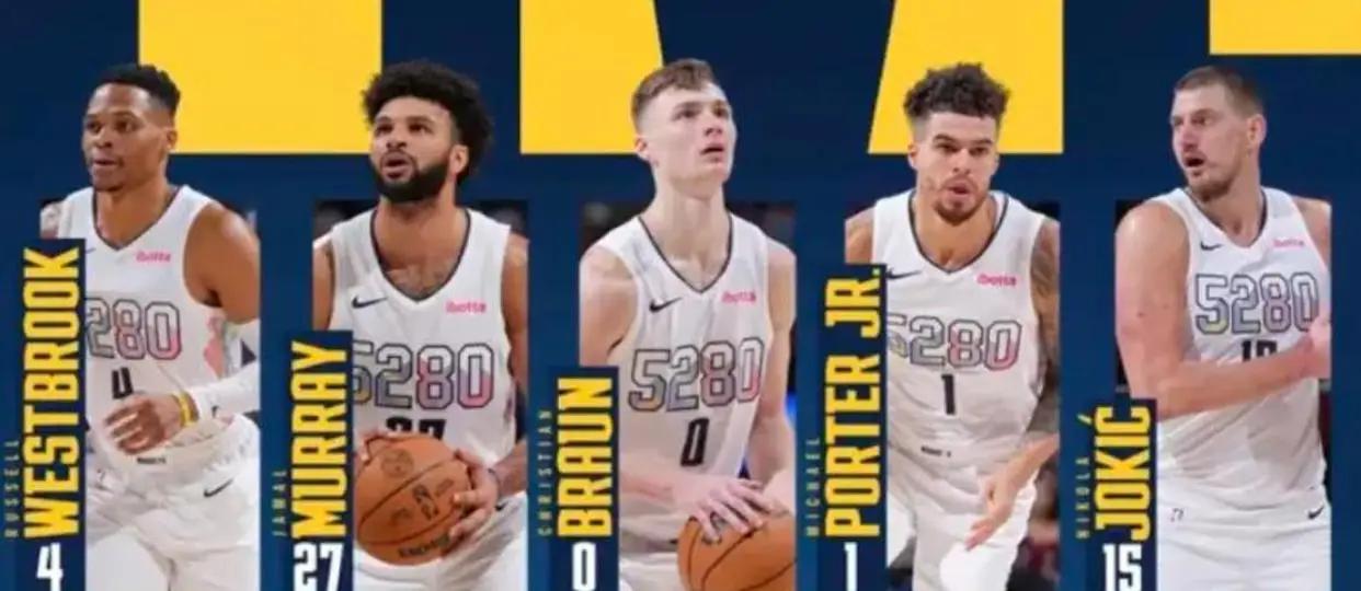 掘金队,斯特劳瑟11分钟内得14分1篮板1助攻;约基奇9中6得18分3篮板5助攻2抢断;威少5分5篮板7助攻。