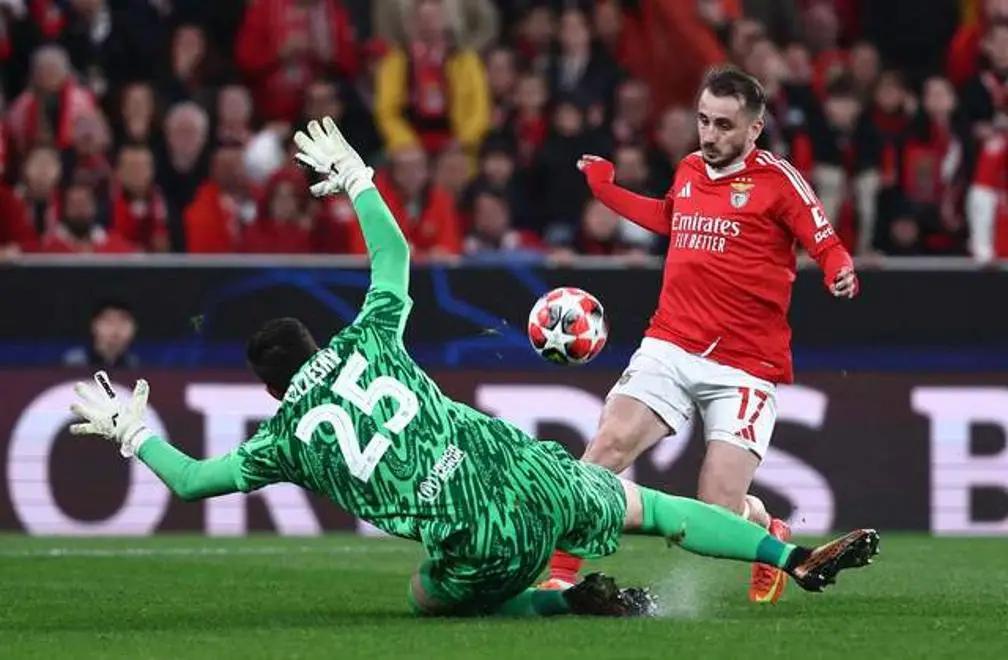 第22分钟,本菲卡长传,什琴斯尼出击失误撞倒队友巴尔德,帕夫利季斯获空门机会破门,巴萨1-2落后。