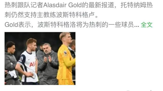 根据热刺跟队记者报告的消息,管理层还是信任波斯特科格鲁,不知道的还以为是热刺主教练有管理层的什么威胁,能把一支争冠球队带到联赛倒数,这样的主教练居然还能受到管理层的支持,实在是难以想象,这是球队现在内部乱成什么样子了,完全开始摆烂。