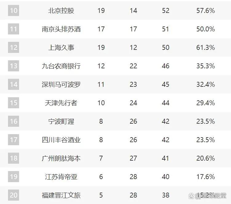北京则排在第九,他们第二阶段开始之后战绩非常糟糕。球队的磨合不行,外援的实力也不行,他们需要在窗口期尽快解决问题了。如果这样的问题持续保持下去的话,不排除被一轮游的可能性。