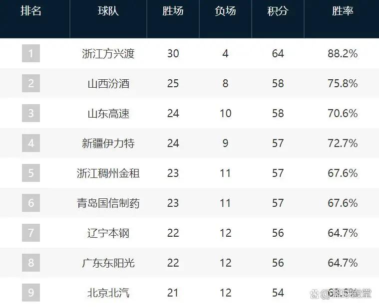 而浙江与青岛还在紧咬前四。他们都是潜力球队,不过浙江靠着出色的防守,还是能持续提升排名。青岛之前遭遇伤病,现在也在回暖,他们分列五六名。