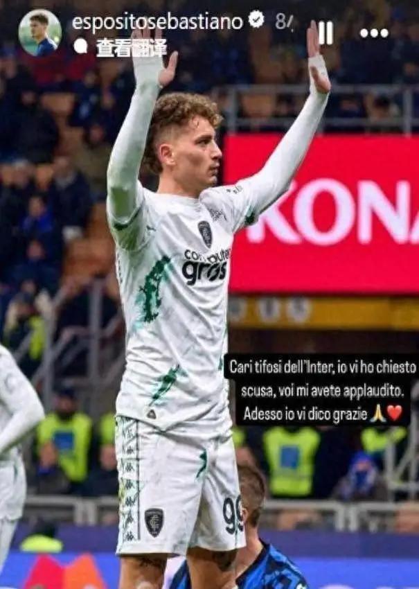 最近那场恩波利对国米的比赛,他在梅阿查进了个球,赛后还双手合十向国米球迷道歉。