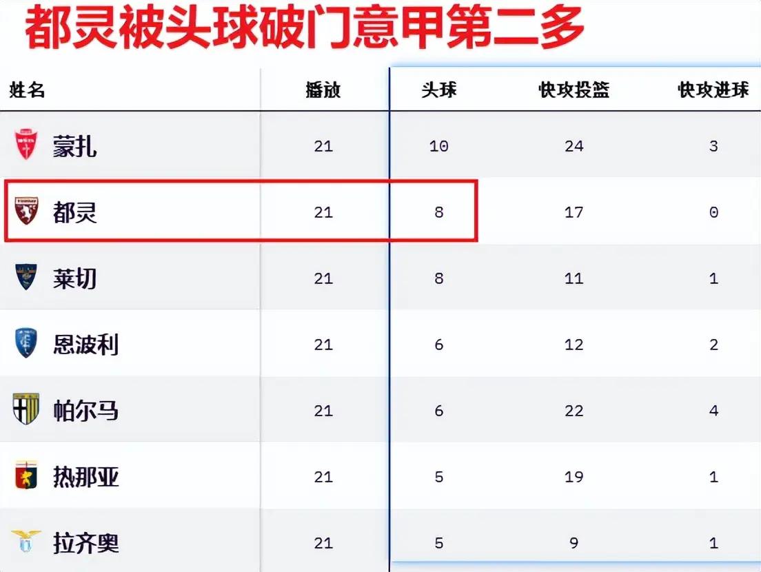二个事实:目前意甲都灵丢了8个头球同样并列第二多。