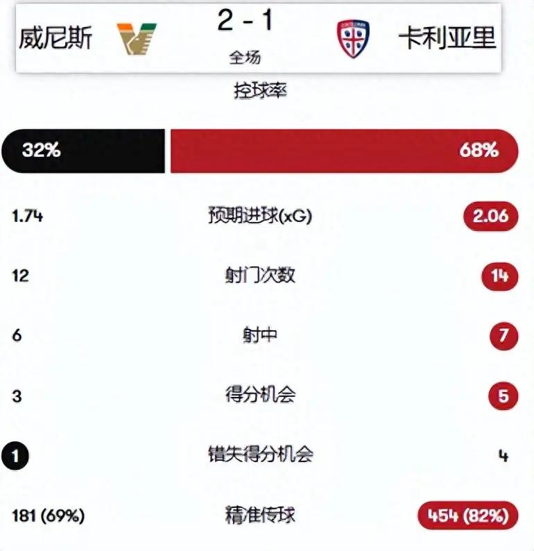 需要注意的是,卡利亚里上轮4比1打爆了同级别对手莱切,整场比赛完全是压着莱切打,后者毫无还手之力......