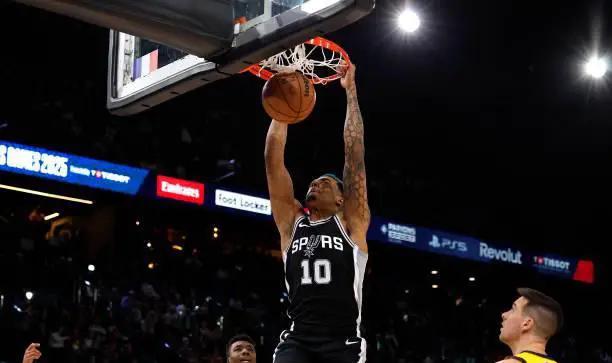 值得关注的是,在这场比赛中伤愈复出的马刺锋线新星杰里米-索汉的表现相当抢眼。他出场时间虽然有限,仅17分45秒,但投篮9中6,三分球1中1,拿下13分9个篮板和3次助攻,几乎完成了两双数据,还做出3次前场篮板和正负值+12。索汉展现了全面的得分能力,不仅在进攻端表现出色,而且在传球、策应和防守方面也表现稳定。他的精彩表现成为马刺轻松击败对手的重要因素之一。