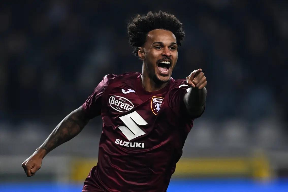 上半场第6分钟,里奇妙传,28岁昔日英超悍将切-亚当斯先拔头筹帮助都灵队取得领先。