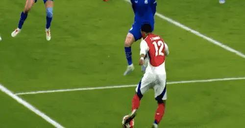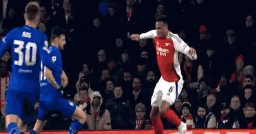 还有第18分钟,加布里埃尔被对手一脚踹倒,裁判居然连个黄牌都没给!
