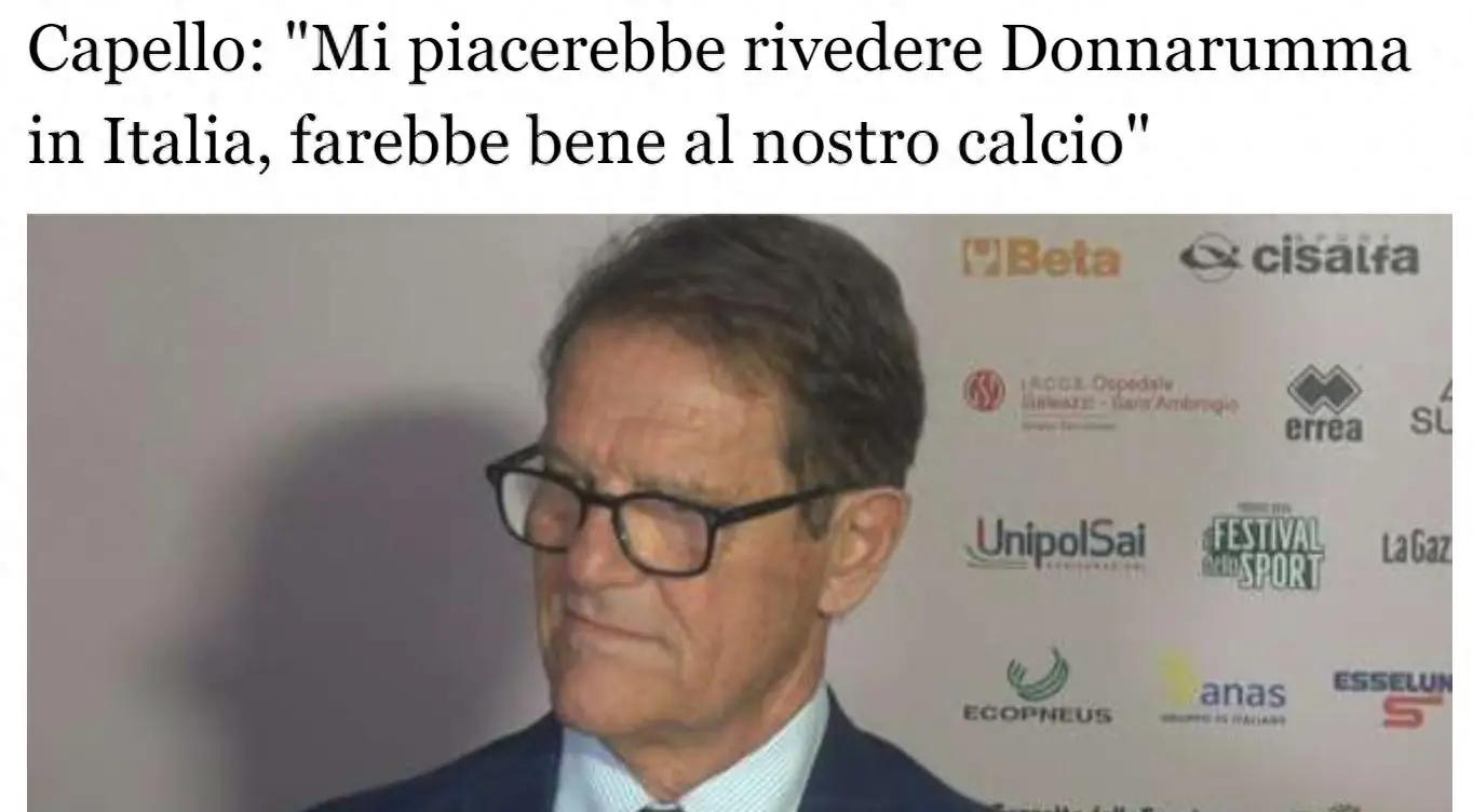 在国米1-0击败布拉格斯巴达的比赛前,在天空台出任嘉宾的卡佩罗表示:“我非常希望多纳鲁马回归意甲,这无论对意甲还是对国家队来说都是好事,也因为法甲联赛在我看来,无法提供意甲同样的竞争力和强度”。
