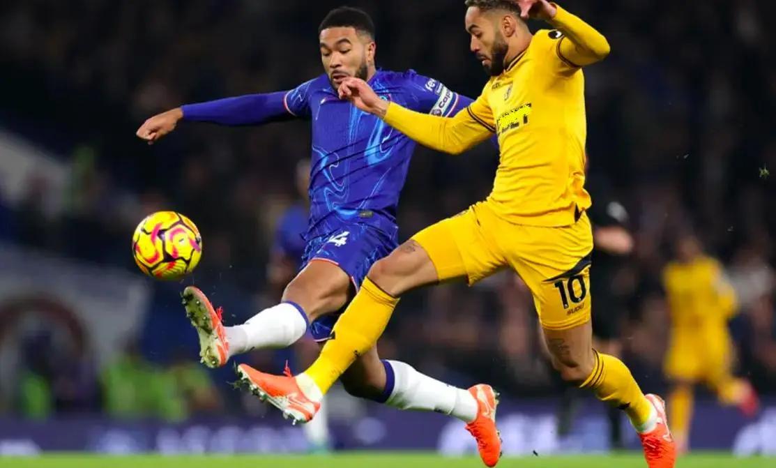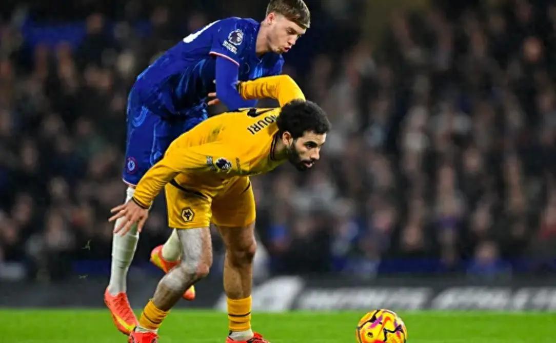 领先后的切尔西似乎放慢了进攻的节奏,他们开始更多地控制球权,试图通过传球来寻找更好的进攻机会。接下来的 20 分钟,切尔西都没有像样的射门。而狼队则在半场尾声阶段开始了反扑,他们逐渐加强了进攻,试图扳平比分。上半场补时第 4 分钟,狼队获得了一次角球机会。桑切斯在门前准备接球,但他却出现了脱手的情况,足球在禁区内引起了一阵混乱。就在这时,狼队的多赫蒂抓住机会,将球打进。比分变成了 1-1,狼队在最后时刻扳平了比分。上半场比赛结束,尽管切尔西在场面占据优势,但双方的比分却是 1-1 平。
