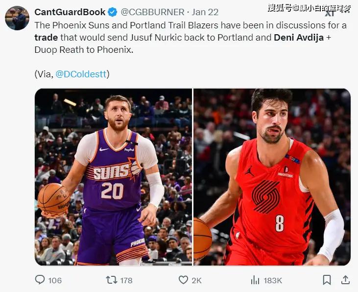 实际上在1月22日,太阳记者Dcoldestt透露,凤凰城正在努力将努尔基奇送回波特兰,他们希望用首轮签+努尔基奇换回阿夫迪亚与里斯。