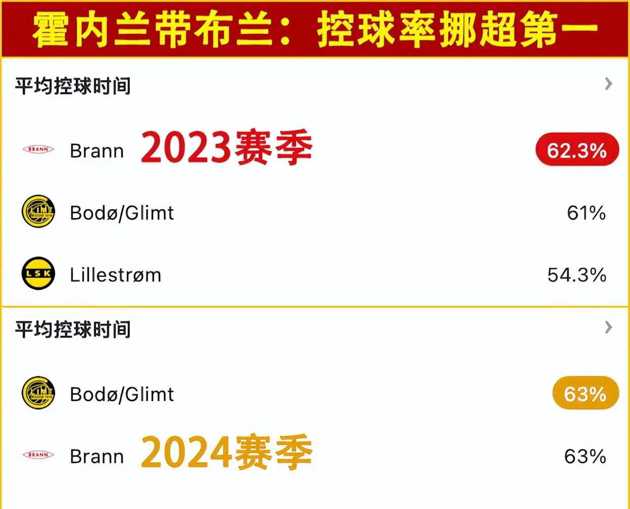 主教练霍内兰非常重视控球率,在挪超布兰执教期间,连续两个赛季他的球队控球率都位居第一。