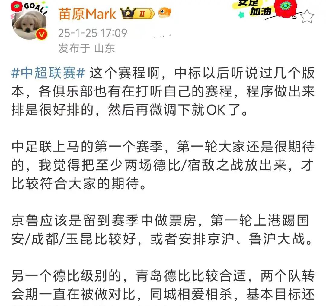 在关于山东泰山队揭幕战对手的问询中,记者苗原明确否定了北京国安的可能性。他指出,山东泰山与北京国安的交锋应保留到赛季中段以确保票房效应,因此泰山队更有可能在第一轮迎来与鲁沪球队的激战。至于“鲁沪大战”中的“沪”究竟指的是上海申花还是上海海港,则并未被记者明言。