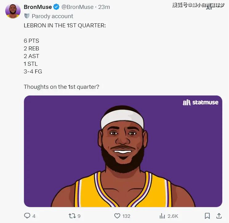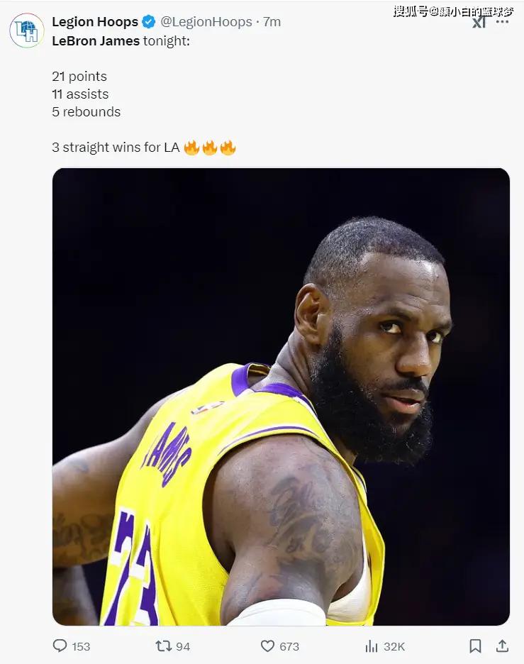 比赛还剩4分结束,美媒LH已经晒出詹姆斯的数据写道:洛杉矶湖人锁定三连胜。