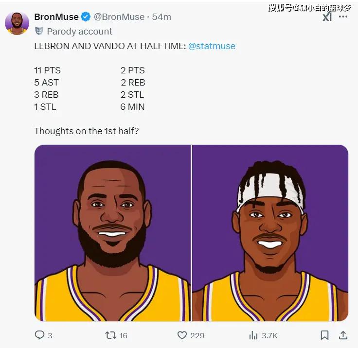 这场比赛雷迪克变阵了,八村垒轮休芬尼-史密斯先发,不过范德比尔特可以打,老詹在锋线上得到了更多的休息时间,首节詹姆斯8分钟,4中3拿到6分2篮板2助攻1抢断,老詹这6分还都是湖人在落后时连续拿到。