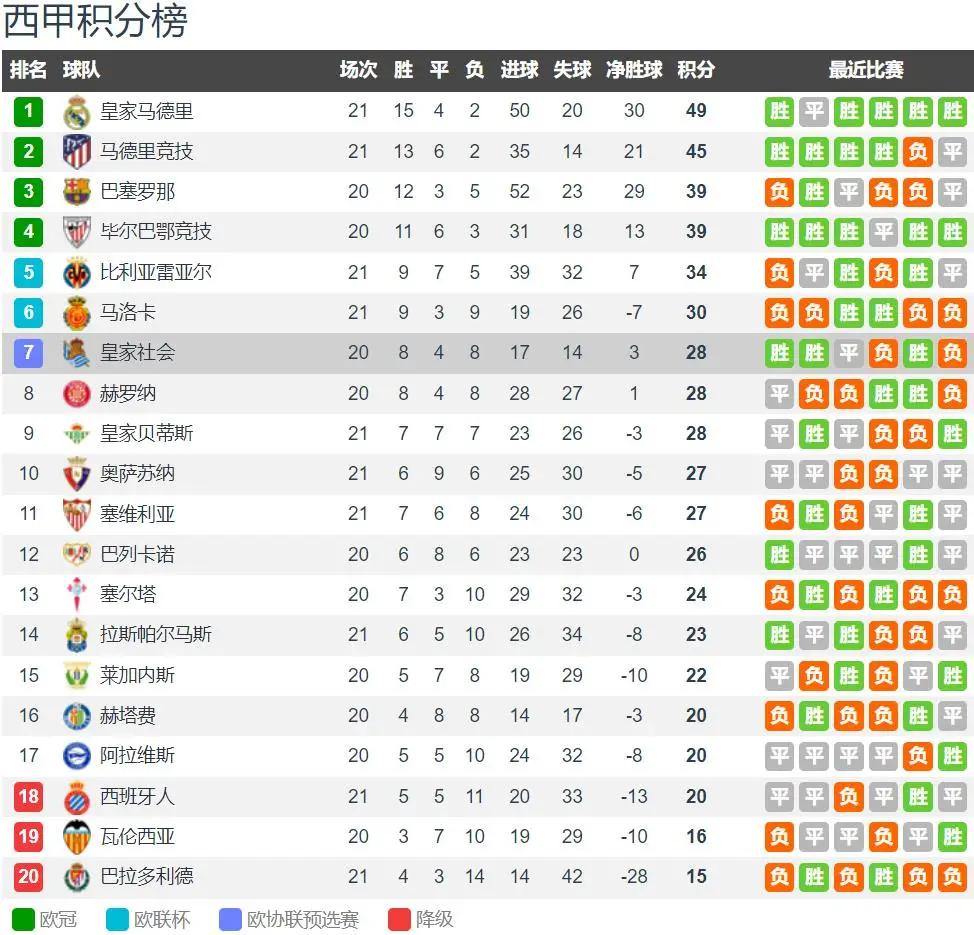 第一:两队情况!西甲20轮战罢,皇家社会8胜4平8负积28分排名第七,与先赛的第六名马洛卡仅差2分;赫塔费4胜8平8负积20分,与降级区同分。上轮西甲,皇家社会客场0-1不敌瓦伦西亚,遭遇联赛客场两连败,近4场仅1胜,周中欧联杯客场1-3不敌拉齐奥;赫塔费主场1-1战平巴萨。