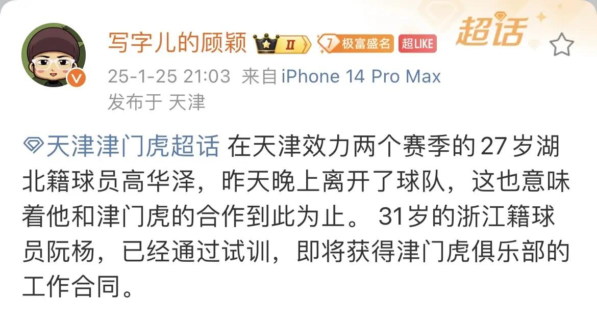 多支中超球队的5外援已经确定,云南玉昆官宣了最后一名外援恩里克加盟,他曾效力于武汉三镇,时隔半年之后,重新回到中超。津门虎5外援也全部官宣,内援引进也接近尾声,所有的球员,都得到队试训,经过于根伟的考核才能留下。据媒体人顾颖透露,试训的高华泽离队,没有达到要求。31岁的前锋阮杨则是留队,将会加盟。
