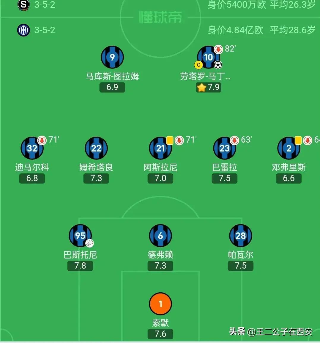 球员中三后卫和三中场因为出色的出球控球显得数据亮眼,巴斯托尼更是在姆希塔良的策应下,助攻了劳塔罗的进球。