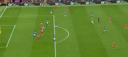 这场比赛利物浦的控球率高达72%,射门次数更是达到了惊人的55次,这说明了利物浦对比赛的绝对掌控。虽然仅仅5次射正,却打进了3球,这充分体现了利物浦的进攻效率之高,以及球员们把握机会的能力有多么出色。在比赛的第83分钟,伊普斯维奇球员赫斯特的头球攻门险些破门,若非阿利松神勇扑救,比赛结果可能就会发生改变,这足以看出利物浦的后防线虽强,但并非坚不可摧。伊普斯维奇虽然最终挽回一球,但面对利物浦强大的攻势,他们显得无力招架。