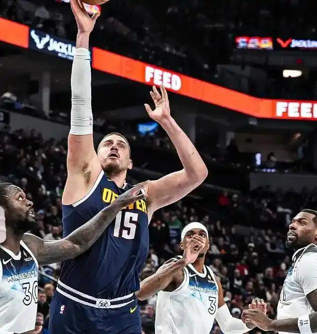 约基奇本赛季已取得20次三双,仅用了38场比赛,刷新个人生涯最快记录,并且实现了赛季场均三双,之前做到这一点的正是队友威少。如今约基奇和威少成为掘金的关键先生,有望在两人带领下取得更出色成绩。开场时,掘金采取错位防守策略,让威少盯防兰德尔,却被森林狼抓住机会反击,在6分内连续强攻威少。约基奇挺身而出承担得分任务,先三分命中,接着底线单打得手。然而威少仍遭兰德尔犯规得分,激怒裁判数次抱怨。在整体进攻效率不佳的情况下,约基奇一人独揽13分。